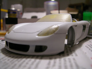 Well, it's been sometime since I wrote in here. Almost forgot I had a blog running. It has also been sometime since I built anything. This car below is officially my first model of 2009. You may not be familiar with the shape but it's a Porsche Carrera GT. A friend of mine simply adores the car. She was with me when I got the model. She thinks i got it and am building it just to spite her. Little does she know that when it's done, I'm giving it to her. I'm not particularly a fan of white, I find it a very challenging colour to paint. But since she likes it, why not. Just put some extra effort into it. Below you'll see that the two main sub assemblies are done. Just need to put the gloss coat onto the body, put it together and i'm done.